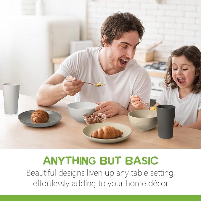 - PACKAGE INCLUDE: This wheat straw dinnerware sets include 32 pieces in total. Easy to match your existing flatware.