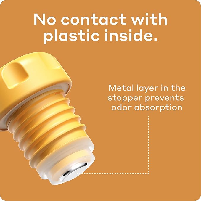- SAFETY FIRST: 18/8 high grade rust-free stainless steel metal bottle. BPA-free, food-grade steel, food-grade plastic and silicone. Stopper has extra metal layer to prevent odor absorption. Your drink will never touch any plastic