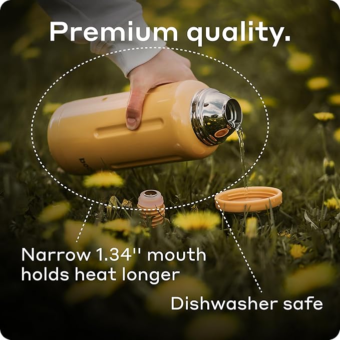 - EXCEPTIONAL TEMPERATURE CONTROL: Keeps cold up to 72 hours and hot up to 48 hours. Triple-wall vacuum insulation, high-quality insulated layer and narrow mouth help to hold the desired temperature. The outer part of the thermos has a copper top coating to keep coffee and tea hot, while iced water is kept cold