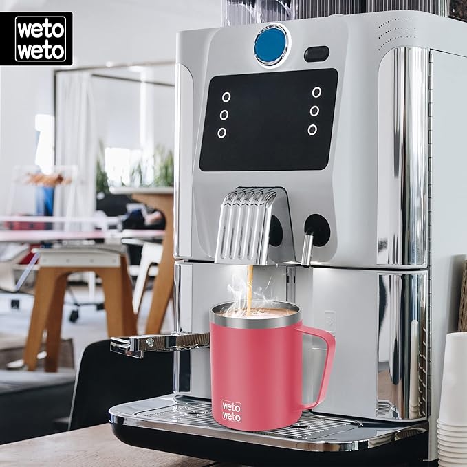 WETOWETO 14 oz Coffee Mug, Vacuum Insulated Camping Mug with Lid, Double Wall Stainless Steel Travel Tumbler Cup, Coffee Mugs Outdoor, Powder Coated Watermelon Red