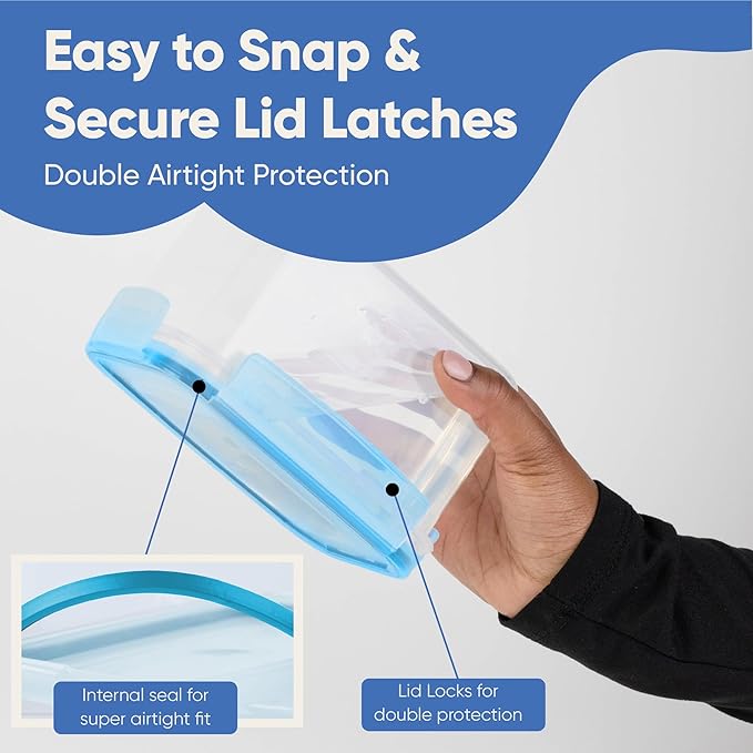 - Space-Saving Design - Maximize your storage space with our highly stackable translucent blue containers. They fit seamlessly in your refrigerator, cupboards, and kitchen counters, helping you maintain an organized and clutter-free environment.