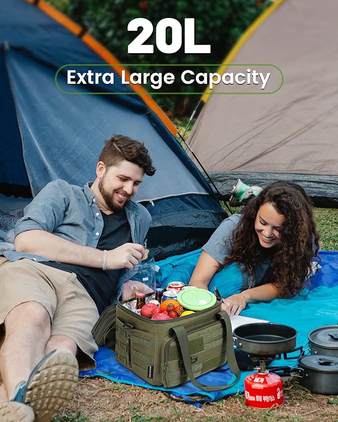 RalChyez Tactical Lunch Bag, 20L Large Heavy Duty Double Deck Insulated Lunch Box Leakproof Expandable Tote Cooler with Shoulder Strap for Adult Men Women Work Fishing Picnic Travel Green