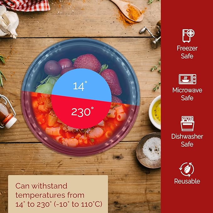 - Microwave/Freezer Safe: Food storage containers designed to safely withstand temperatures from 14 to 230°F (-10 to 110°C).