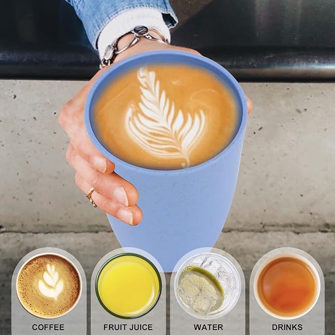 - 【Multipurpose Wheat Straw Cups】Cups for water, milk, Juice, soda and more. It also can be a gargle cup or toothbrush holder, great for all age of kids, adult and the eldly. They can be stacked and stored, just take up a small storage space, make your space more tidy.