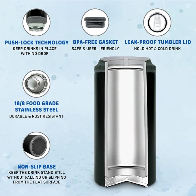 - When you get our can cooler, you're not getting juts a simple device that keeps your drink cool thanks to the fantastic implimentation of stainless steel on the side. On the contrary, our can cooler can act as a seperate bottle to keep your drink either hot or cold for roughly 4 hours. Due to that special feature, the cooler comes with two different types of lids for the cooler function and the bottle function. The lids are very tight to prevent spillage.