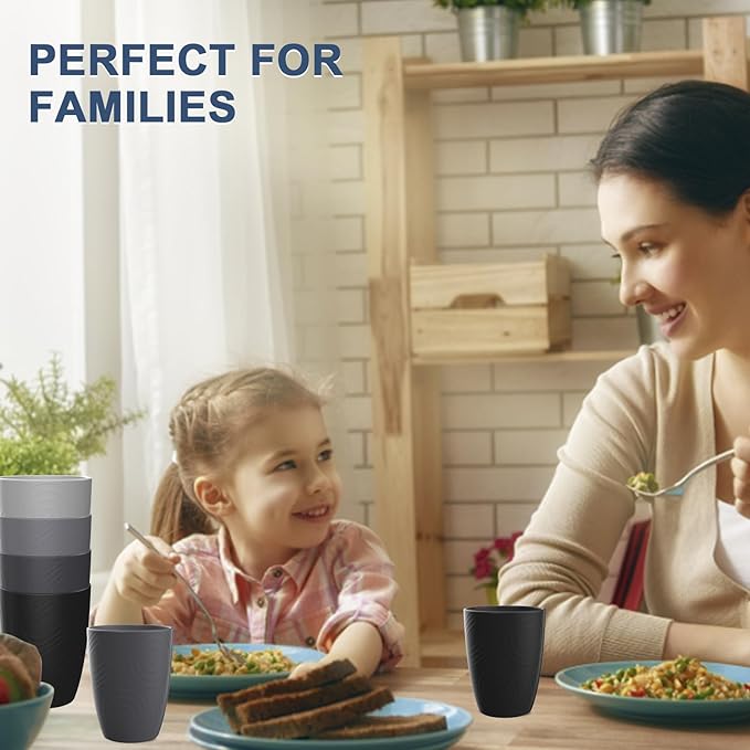 Wrova Wheat Straw Cups 8 PCS Good Alternative to Plastic Cups 12 oz Unbreakable Drinking Cup Reusable Dishwasher Safe Water Plastic Glasses Kids Tumbler with 4 Colors
