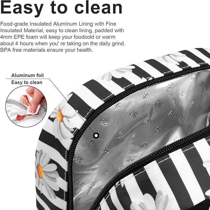 - Premium Quality Material - This insulated lunch bag is Lined with FDA water resistant premium soft aluminum foil, interior padded with 4mm thicken insulation pearl foam, protect with 600D oxford tarpaulin outer fabric. The small lunch box is water resistant and heavy duty.