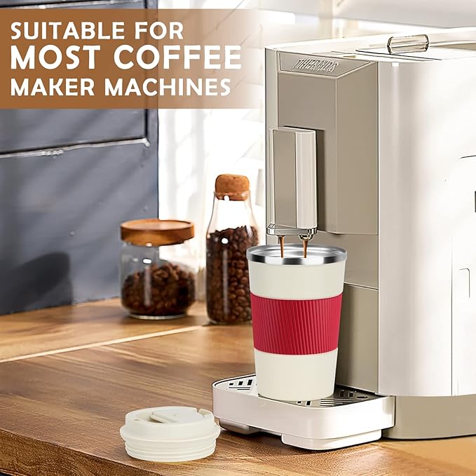 - 【 Cupholder Frindly and Portable 】 5.7 inches height, 3.6 inches base width and an anti-slip rubber cushion make KETIEE reusable coffee cup with lid not only fit most cupholders, but also easy to grab and go. The sip hole on the top of the lid can let you enjoy your coffee conveniently with one hand.