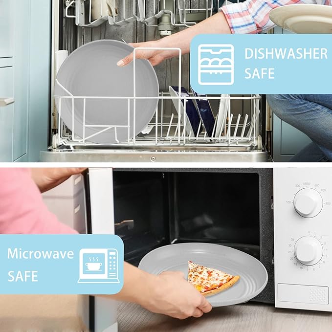 Supernal 32pcs Wheat Straw Dinnerware Sets for 8,Plates and Bowls Sets,Reusable Plastic Plates,Grey Dish Set for 8 include 16pcs Dishes, 8pcs Bowls, 8pcs Cups,Dishwasher Safe.