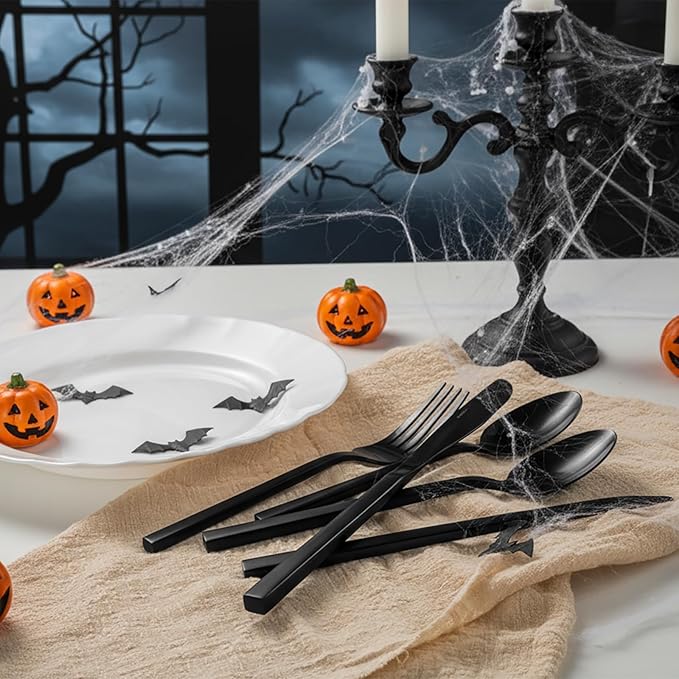 Alata Cube Black 20-Piece Forged Silverware Set Stainless Steel Flatware Set,Service for 4,Matte Satin Polished Cutlery Set,Dishwasher Safe
