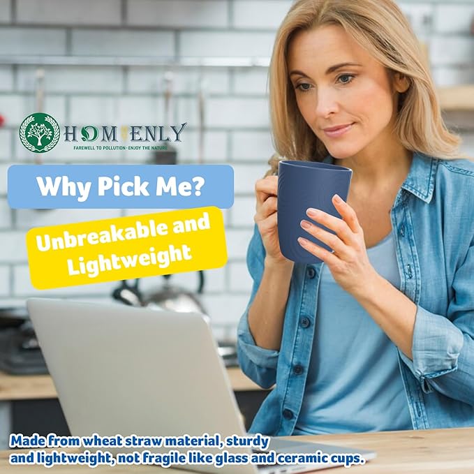 - PREMIUM WHEAT STRAW MATERIAL: Crafted from premium wheat straw, these cups are non-toxic and safe. Perfect for health-conscious families. The food-grade material is both sturdy and versatile—ideal for your favorite hot or cold drinks. This versatile cup set is perfect for all your favorite beverages—from morning coffee and hot cocoa to iced tea, juice, and soda.