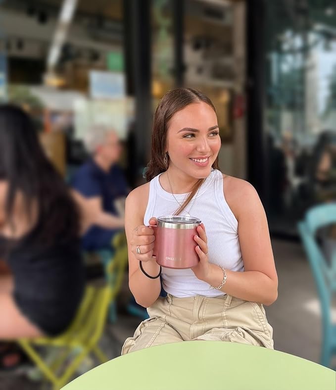- Always With You - The CHILLOUT LIFE thermal coffee mug with handle is made of premium 18/8 food grade stainless steel for a 100% durable unbreakable coffee mug. Electro polished on the inside, the cups stay 100% rust free. The outside of each mug have a great feel & looks incredibly chic. Easy clean - it’s wonderfully convenient to use at home or on the go instead of ceramic or enamel mugs.