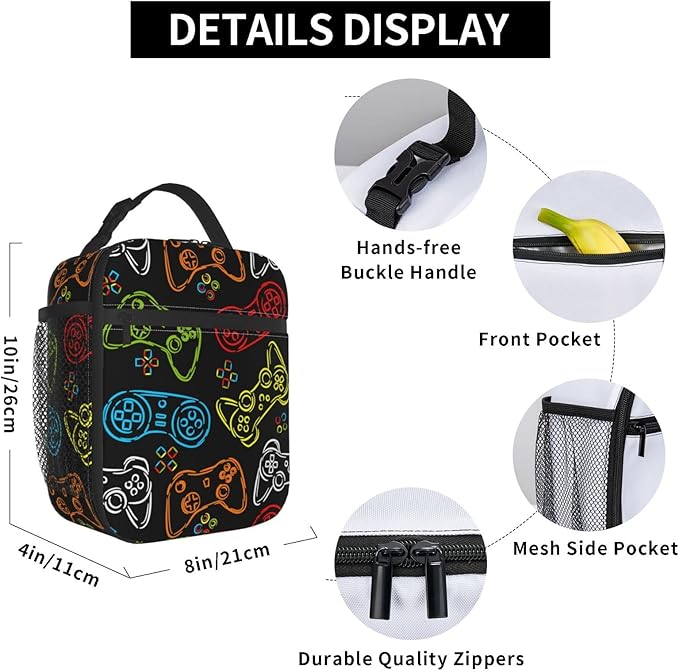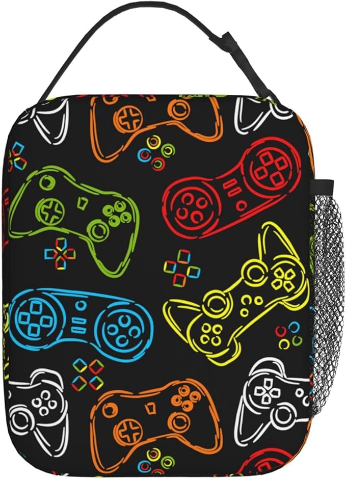 - Easy to Clean:The internal insulation layer of this video game controller lunch bag is easy to clean and waterproof. It is also oil-proof and leak-proof, so you can easily wipe it clean with a wet soft cloth. the surface won't easily get dirty, making it easy to wash the bag.it's ideal for school, office, outdoor picnic, BBQ, fishing, camping, travel, Etc.