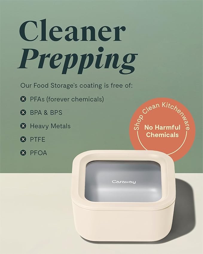 - KEEP YOUR FOOD FRESH: Look forward to leftovers with Caraway’s easy-to-store, non-toxic food storage containers. This 4.4 cup glass container was designed to be displayed and keeps your food fresh & organized.