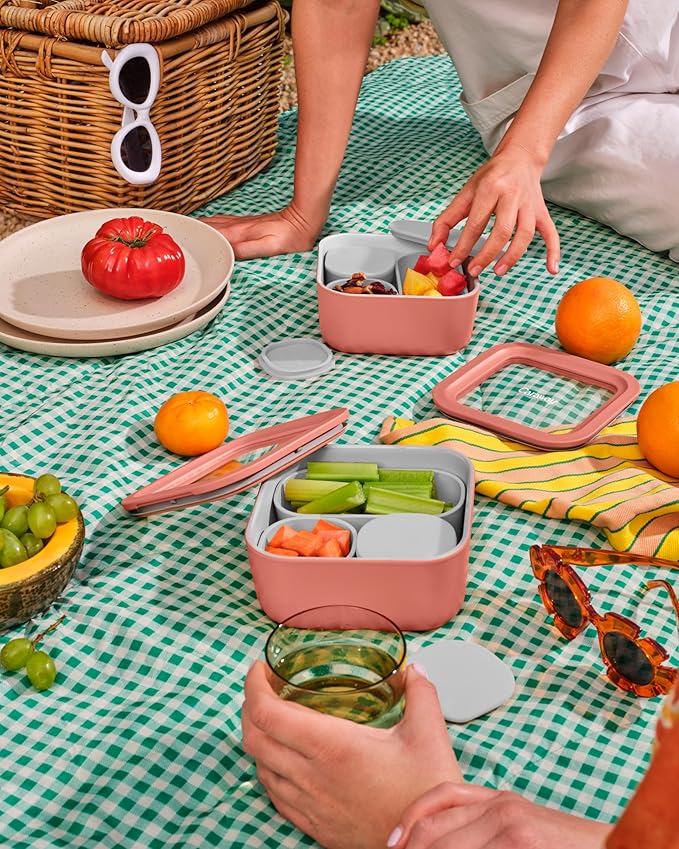 - CREATE YOUR OWN BENTO BOX: Add Caraway’s Dot & Dash Containers to build an on-the-go bento box. They fit neatly in one of our 4.4 cup glass food containers for a lunch that stays fresh and seals tight