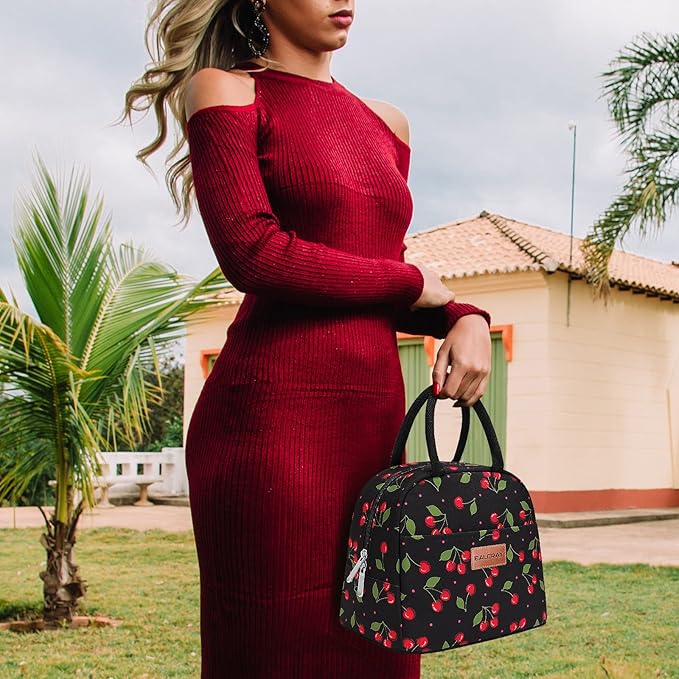 BALORAY Lunch Bag for Women Men Insulated Lunch Box for Adult Reusable Lunch Tote Bag for Work, Picnic or Travel (Cherry, M)