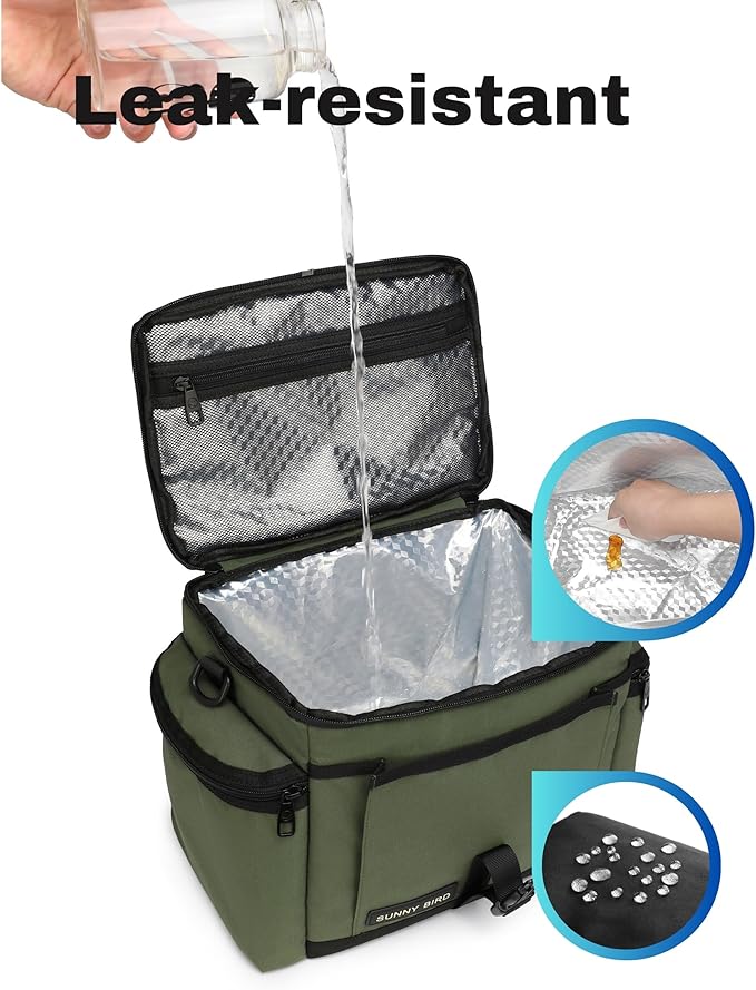 SUNNY BIRD Large Lunch Bag, Thermally Insulated Soft Cooler with Shoulder Strap for Women, Men (Khaki Green)