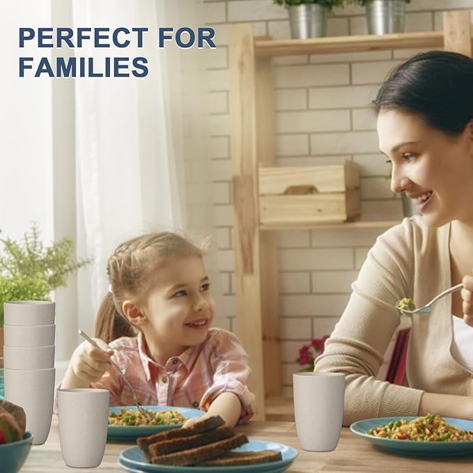 - 【Multipurpose Wheat Straw Cups】Cups for water, milk, Juice, soda and more. It also can be a gargle cup or toothbrush holder, great for all age of kids, adult and the eldly. They can be stacked and stored, just take up a small storage space, make your space more tidy.