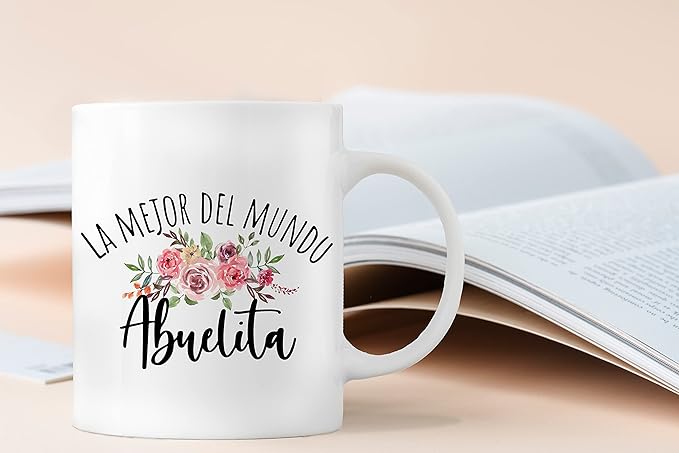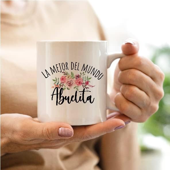 QASHWEY Best Grandma in The World Floral Coffee Mugs Mug, Abuelita Grandma Birthday Mother's Day Gifts From Grandkids,La Mejor Del Mundo Abuelita Spanish Double Side Printed Ceramic Mug Cup 11 Ounce