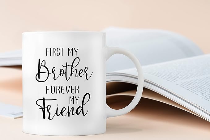 QASHWEY First My Brother Forever My Friend Coffee Mug - Birthday, Christmas, Wedding Gift - Inspirational Friendship Double Side Printed Ceramic Cup 11 Ounce