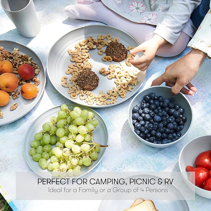 - Multipurpose Dinnerware - Our reusable dishes set for 8 are made for every occasion and will not only be great for home and kitchen use, but also convenient for an rv or camper, a picnic, BBQing, camping, work, school and much more. The unique design allows for easy compact storage as well. You can't go wrong with our wheatstraw dinnerware set.