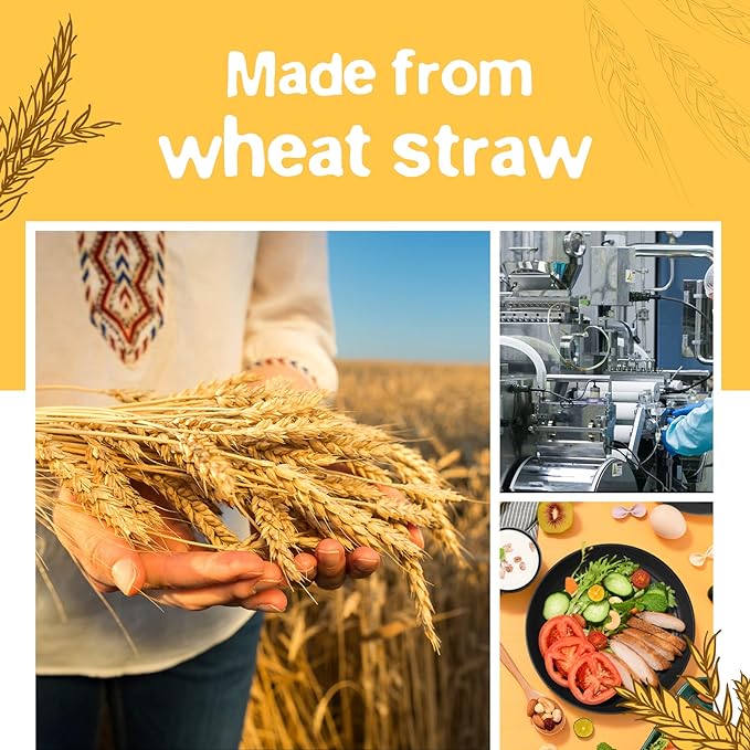 - MATERIAL: Made of wheat straw and plastic material. 100% BPA free. Sturdy, will not break or chip like porcelain or ceramic.
