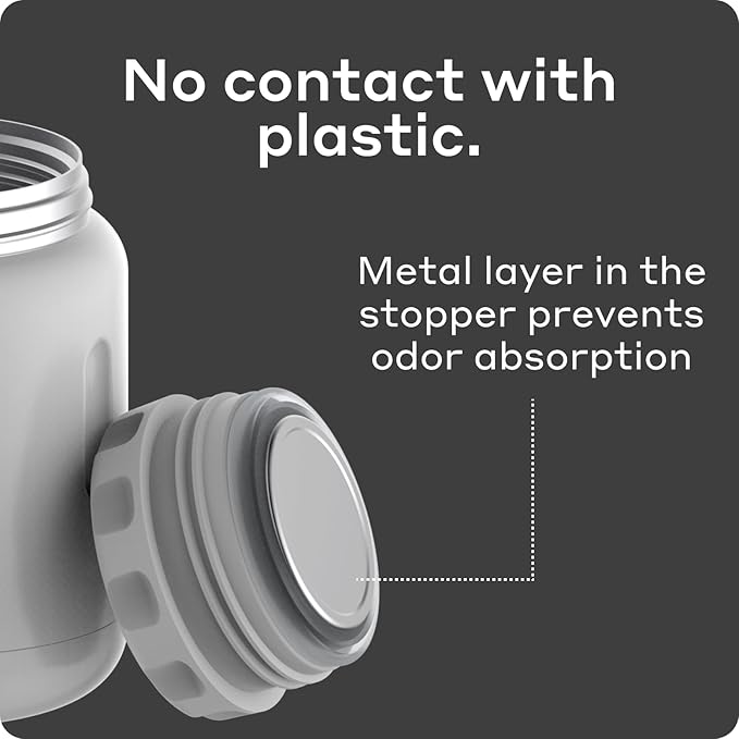 - SAFETY FIRST: 18/8 high grade rust-free stainless steel food thermos. BPA-free, food-grade steel, food-grade plastic and silicone. Stopper has extra metal layer to prevent odor absorption