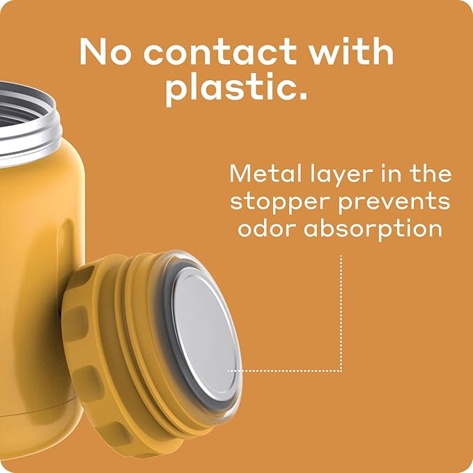 - SAFETY AND DURABILITY: Made from BPA-free, rust-resistant 18/8 stainless steel. Foldable spoon and external cap as a serving bowl included. The stopper has an extra metal layer to prevent odor absorption