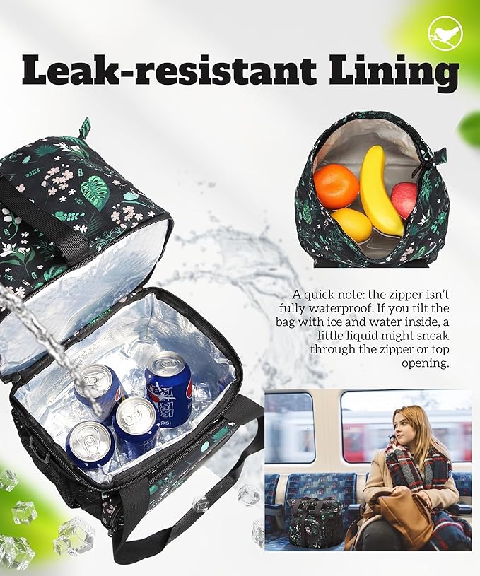 SUNNY BIRD Dual Compartment Lunch Bag Insulated Lunch Box for Women and Men (FloralFoliage 01)