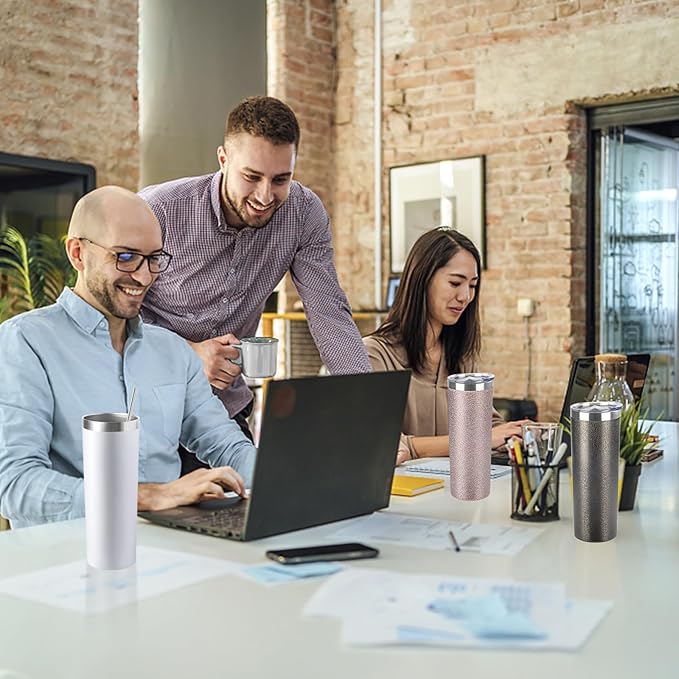 20 oz Skinny Tumbler with Lid and Straw,Stainless Steel Vacuum Insulated Tumbler Cup Double Wall Leak-proof Coffee Mug,Travel Thermal Water Tumbler for Home,Office,Outdoor(White,1)