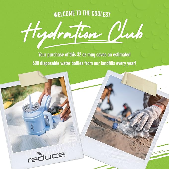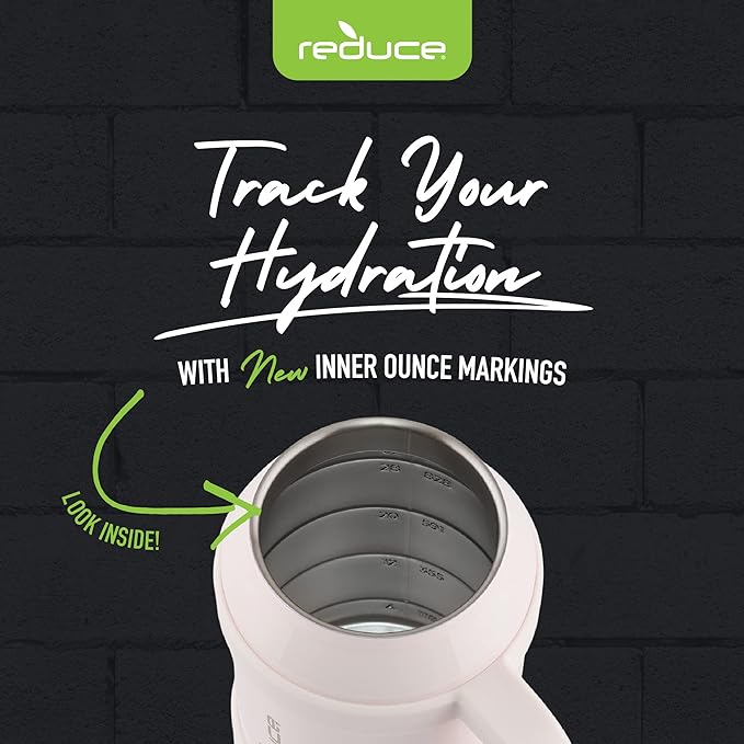 REDUCE Reusable 32 oz Cold1 Water Tumbler – Ergonomic Handle – Double-Wall Insulation – Sturdy Desktop/Tabletop Mug with Lid and Straw – BPA-Free – Stainless Steel for Gym, Home, or Office– Cotton