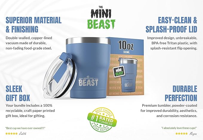 - COMPACT & CONVENIENT: Perfectly sized, this 10oz tumbler offers the same great quality in a more portable size. Ideal for a range of beverages or as your go to reusable coffee cup!