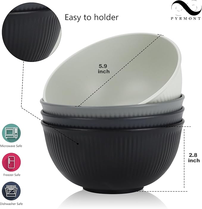 - π[ππππππ πΌπππ-ππππ πΏπππππ] -Our 26 oz wheat straw bowls feature a vertical pattern design that feels great in the hand and offers unparalleled anti-slip practicality. Unlike glass and ceramic options, our textured design is specifically crafted for optimal comfort and safety during mealtimes. Perfect for families with kids or elderly members, our bowls ensure maximum safety and security while dining.