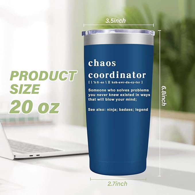 Chaos Coordinator Tumbler Cup, Christmas Gifts for Women,Unique Gift Idea for Boss Lady,Teacher,Office,Mom,Coworker,Birthday Gifts,Thank You for Women,20 oz Blue Mug