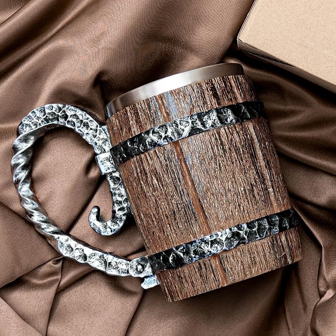 - Material: Our viking mug is built to last. Featuring a hand-made oak exterior and a durable stainless steel interior, it's the perfect combination of style and function.