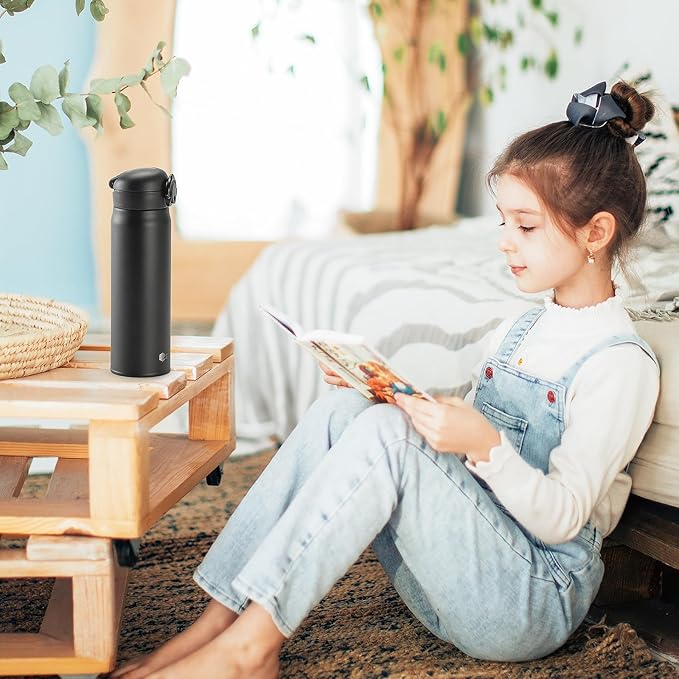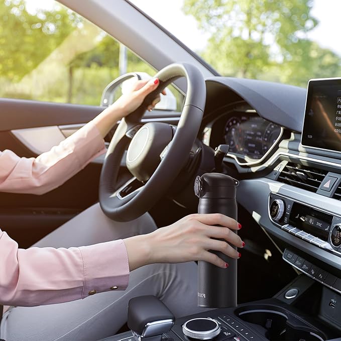 17 oz / 500 ml Insulated Water Bottle, Stainless Steel Thermo Coffee Travel Mug, Thermal Cup with Snap Flip Lid, BPA Free for Hot and Cold Drinking, Black