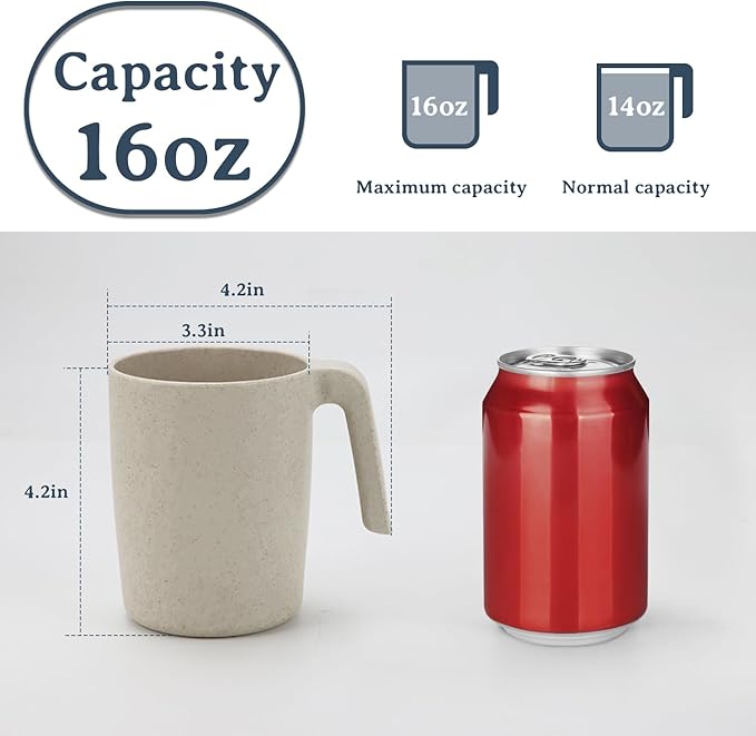 - 【Wheat Straw Material】Each 16oz Unbreakable mug is constructed with organic wheat straw fiber.It is 100% BPA free and non-toxic.It’s a good alternative to plastic drinking cups. This series of wheat straw mug has vibrant and festive colors,bringing bonus happiness to your indoor and outdoor meals.