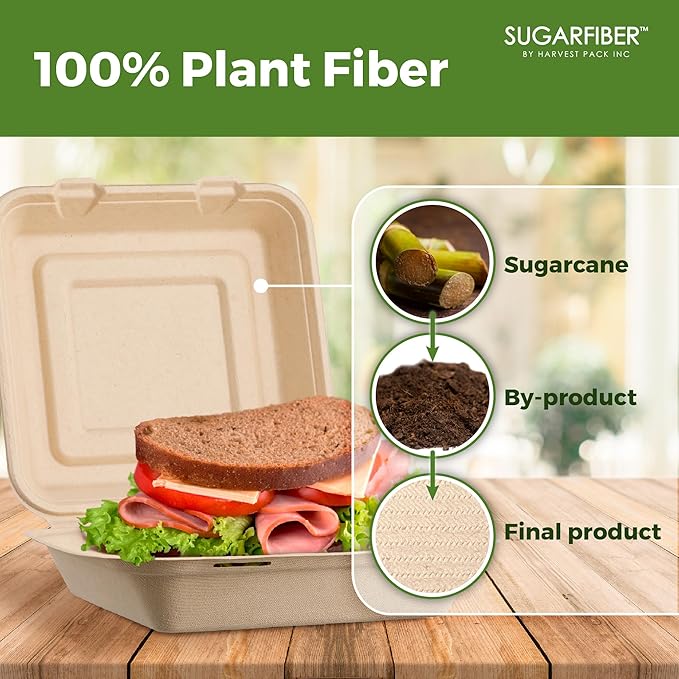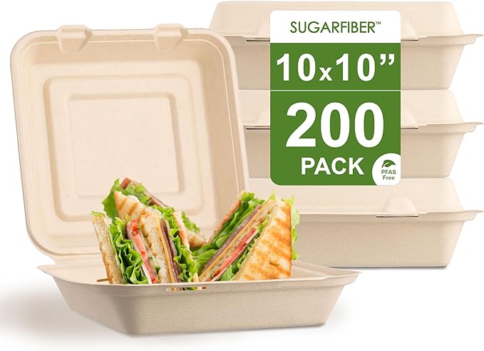 ![[200 COUNT]Sugarfiber by Harvest Pack PFAS FREE 10 X 10" Compostable Clamshell Food Containers, Heavy-Duty Hinged Container, Disposable Bagasse Eco-Friendly Natural Takeout to go Box](http://www.fresorys.com/cdn/shop/files/71RzTEJaUqL._AC_SX679.jpg?v=1761374566&width=1445)