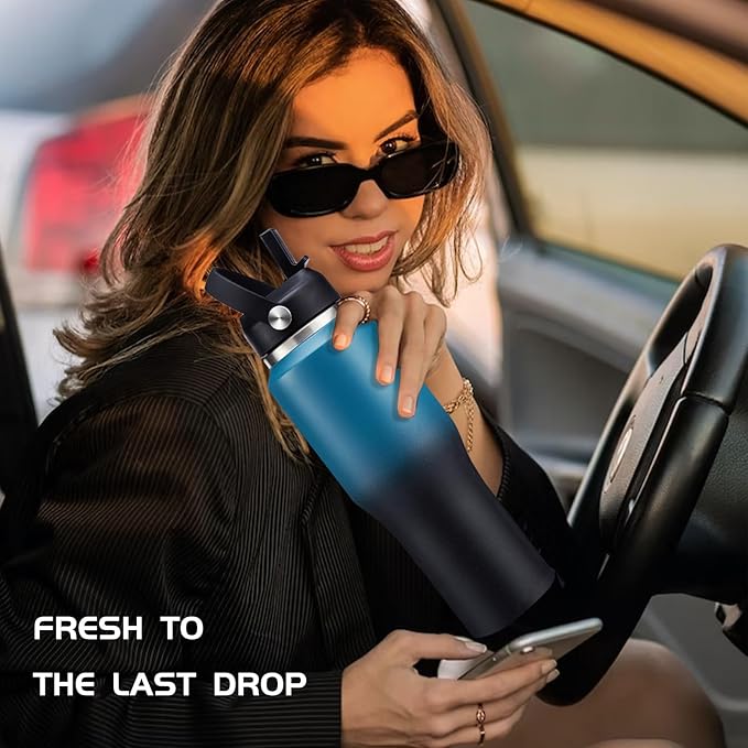 - √ SUPER COMBO & GLAMOROUS GIFT: Buy 32oz insulated travel tumbler, get 8 accessories (2 x lids, 1 x carrier pouch, 1 x shoulder strap, 1 x protective cup mat, 2 x straws, 1 x straw brush). Bring joy to someone special with a slim insulated water bottle that can take with you everywhere you go.