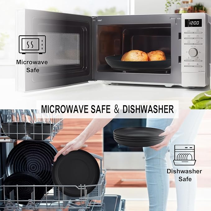 28-Piece Wheat Straw Dinnerware Sets, Microwave & Dishwasher Safe Unbreakable Dinnerware Set, Reusable Dishware Sets, Lightweight Camping Dishes, Plates, Cups, Cereal Bowls for 4οΌBlackοΌ