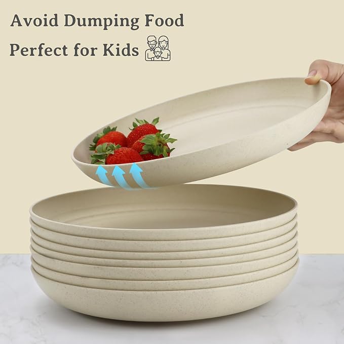 Wrova Wheat Straw Plates - 8 Inch Unbreakable Dinner Plates Set of 8 - Dishwasher & Microwave Safe Plastic Plates Reusable - Lightweight Small Plates for kitchen,R.V. (Beige)