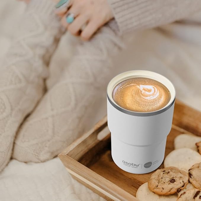 asobu Travel Mug Ceramic Coated Stainless Steel Insulated with Leak and Spill Proof Lid – Fits Standard Cup Holders 12 oz Tumbler (White)