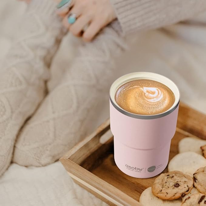 asobu Travel Mug Ceramic Coated Stainless Steel Insulated with Leak and Spill Proof Lid – Fits Standard Cup Holders 12 oz Tumbler (Pink)