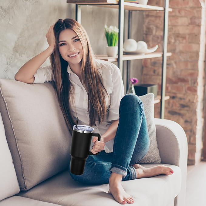 - 40oz Tumbler: This insulated 40oz tumbler with straw and handle is made of high quality 18/8 food-grade stainless steel, this cup is odorless and reusable, effectively reducing pollution