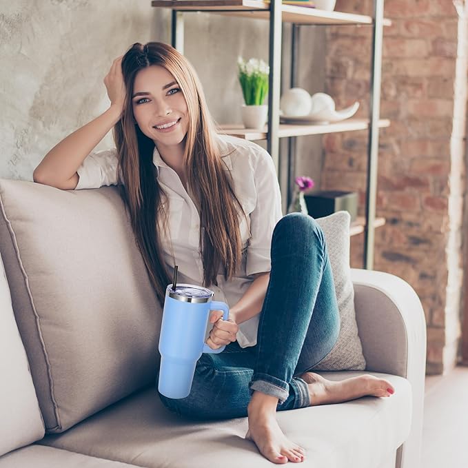 - 40oz Tumbler: This insulated 40oz tumbler with straw and handle is made of high quality 18/8 food-grade stainless steel, this cup is odorless and reusable, effectively reducing pollution