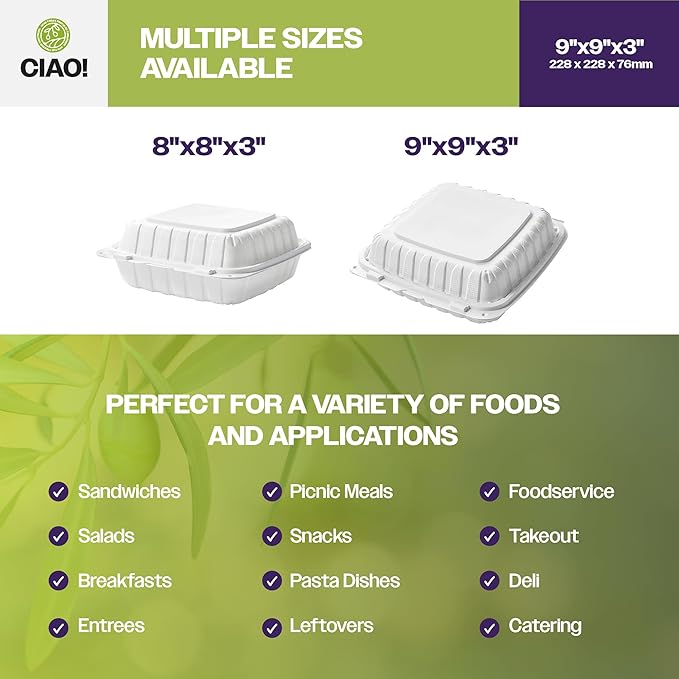 - CIAO! Polypropylene MFPP Hinged Containers are the perfect upscale choice for your takeout at an economical price point. These containers help keep food warm and moist