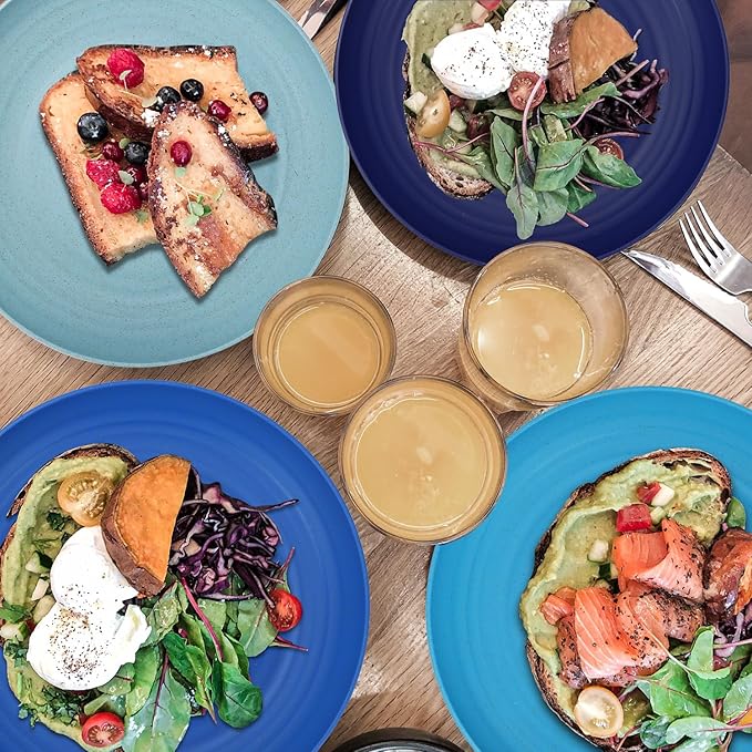 Wheat Straw Plates - 10 Inch Unbreakable Dinner Plates Set of 8 - Dishwasher & Microwave Safe Plastic Plates Reusable - Lightweight Plates for kitchen,camping (Ocean Series)