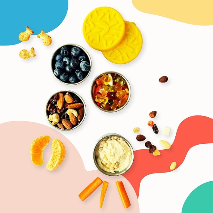 TAVVA 4 X 3 oz Stainless Steel Containers with Lids - Leakproof w/Silicone Lids - BPA Free - Dishwasher & Freezer Safe - Portable & Reusable - Small Snack Cups Dressing Containers