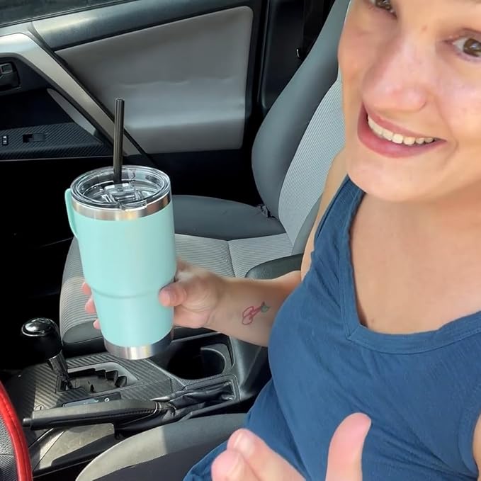 - Multiple Color Options: The 20 oz tumbler with handle is crafted with stylish color powder coating, gives you multiple color options. Also make the tumbler advanced matte texture, delicate and sweat proof. Let you have a good mood when you use the water cup every time