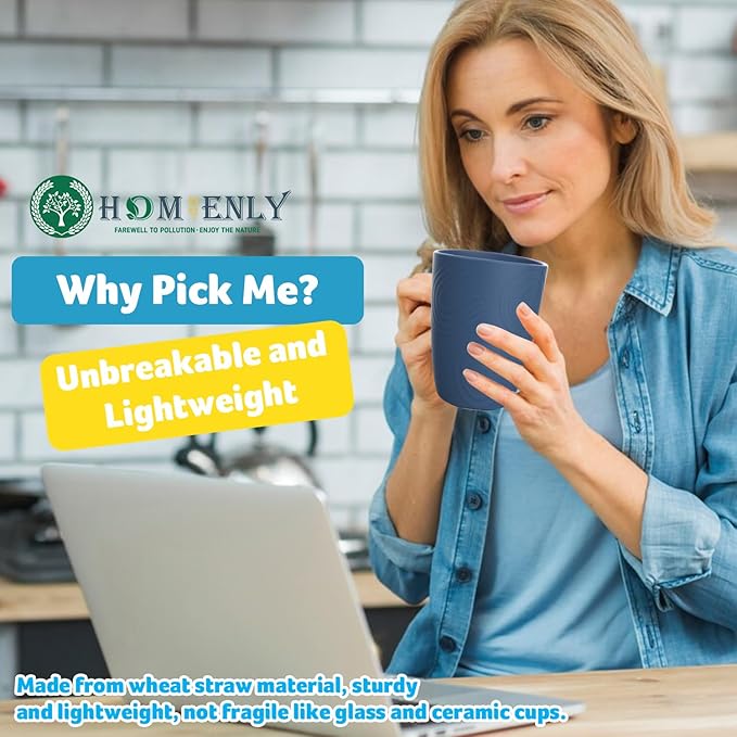 - WHEAT STRAW MATERIAL: Each 12oz wheat straw cup is constructed with organic wheat straw fiber, 100% BPA free, non-toxic, odorless. No BPA and harmful chemical materials. It’s a good alternative to drinking glasses. Very healthy, durable, and beautiful tableware for your family.